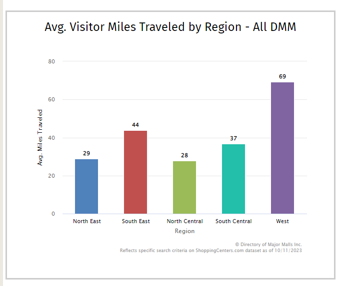 Average distance a visitor traveled to the “Subject” center within the trade area