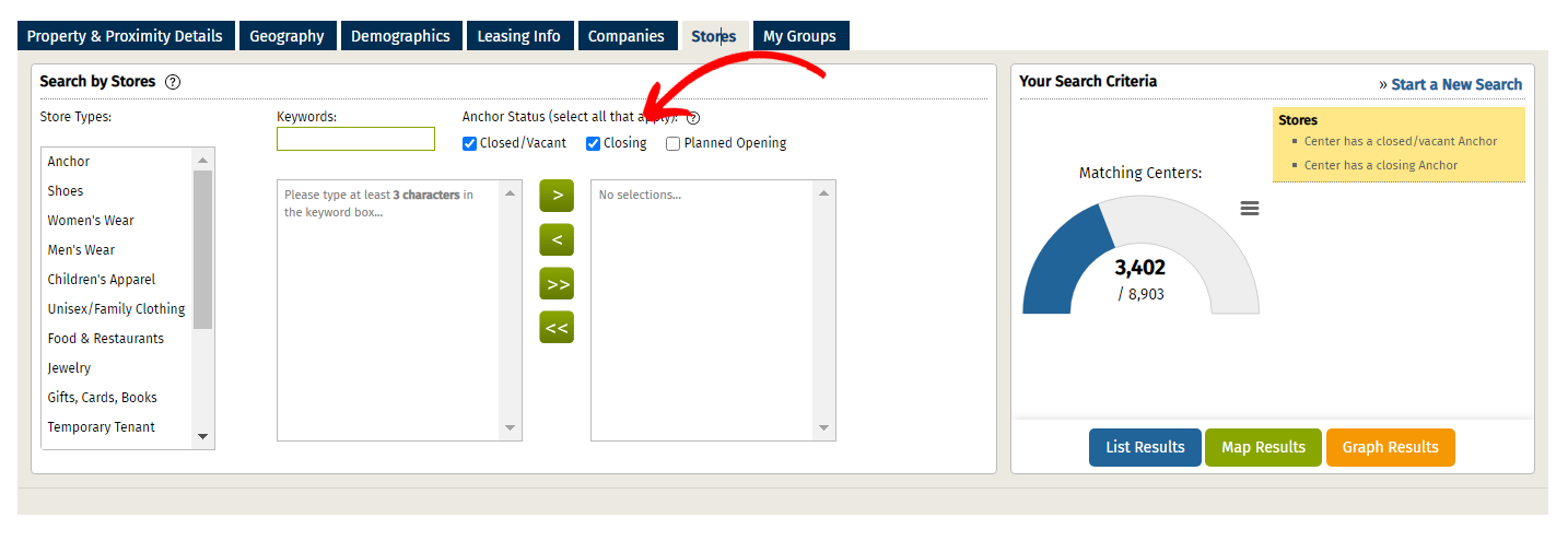 Hint: Use this to Identify properties with excess vacant and closed anchor store space
