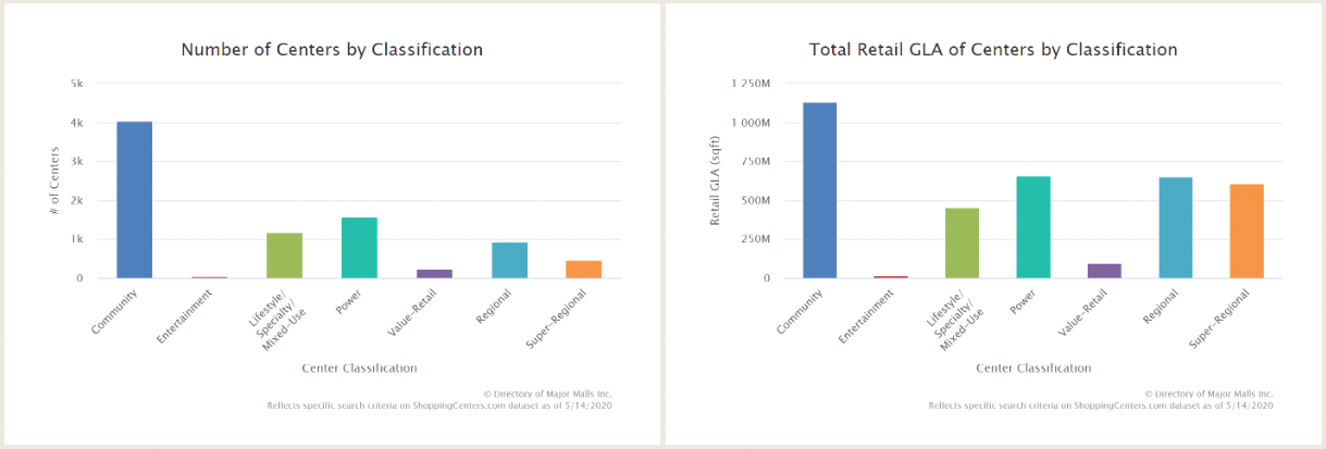 b. Centers by Classification – According to # of Listings and Total Retail GLA