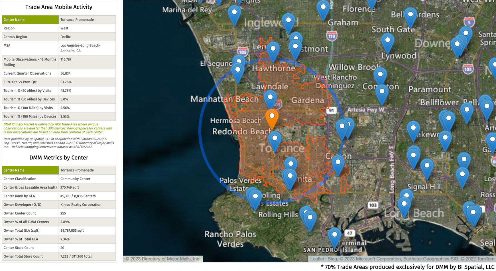 - DMM’s strategic partnership with BI Spatial’s, LLC® leverages their proprietary Trade Area methodology to deliver the most accurate geographic representation of residential origination points for 70% of the customer visitor traffic to a shopping center.