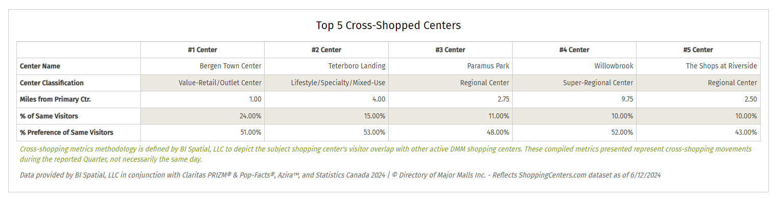 • Top 5 Cross-Shopped Centers with center types and distances