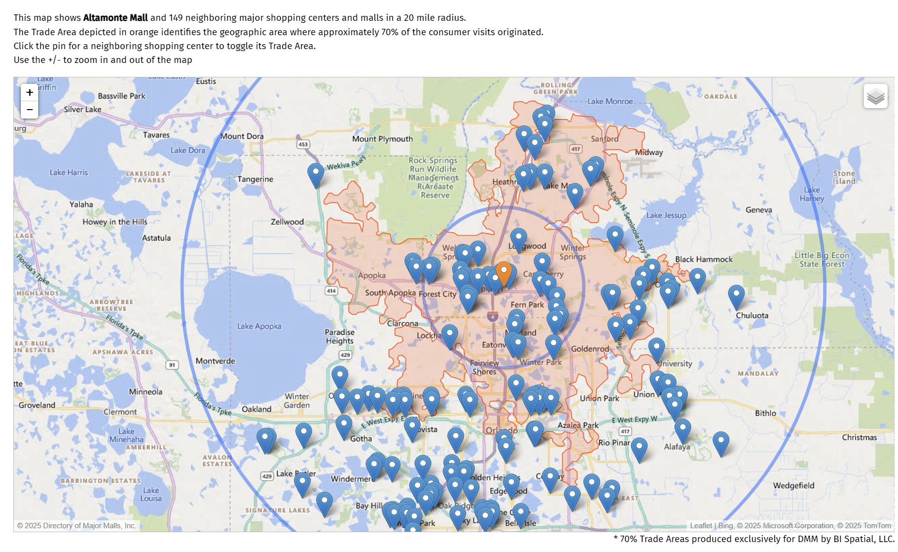 - Cross-Shopping & Competition: Significant visitor overlap exists with nearby centers, particularly West Town Corners (11% overlap), Renaissance Centre (8.6% overlap), and Altamonte Crossing (7.1% overlap). This highlights a competitive landscape where differentiated offerings are key to retaining shopper loyalty. The closest competitor, Renaissance Centre, is located immediately adjacent to the mall.