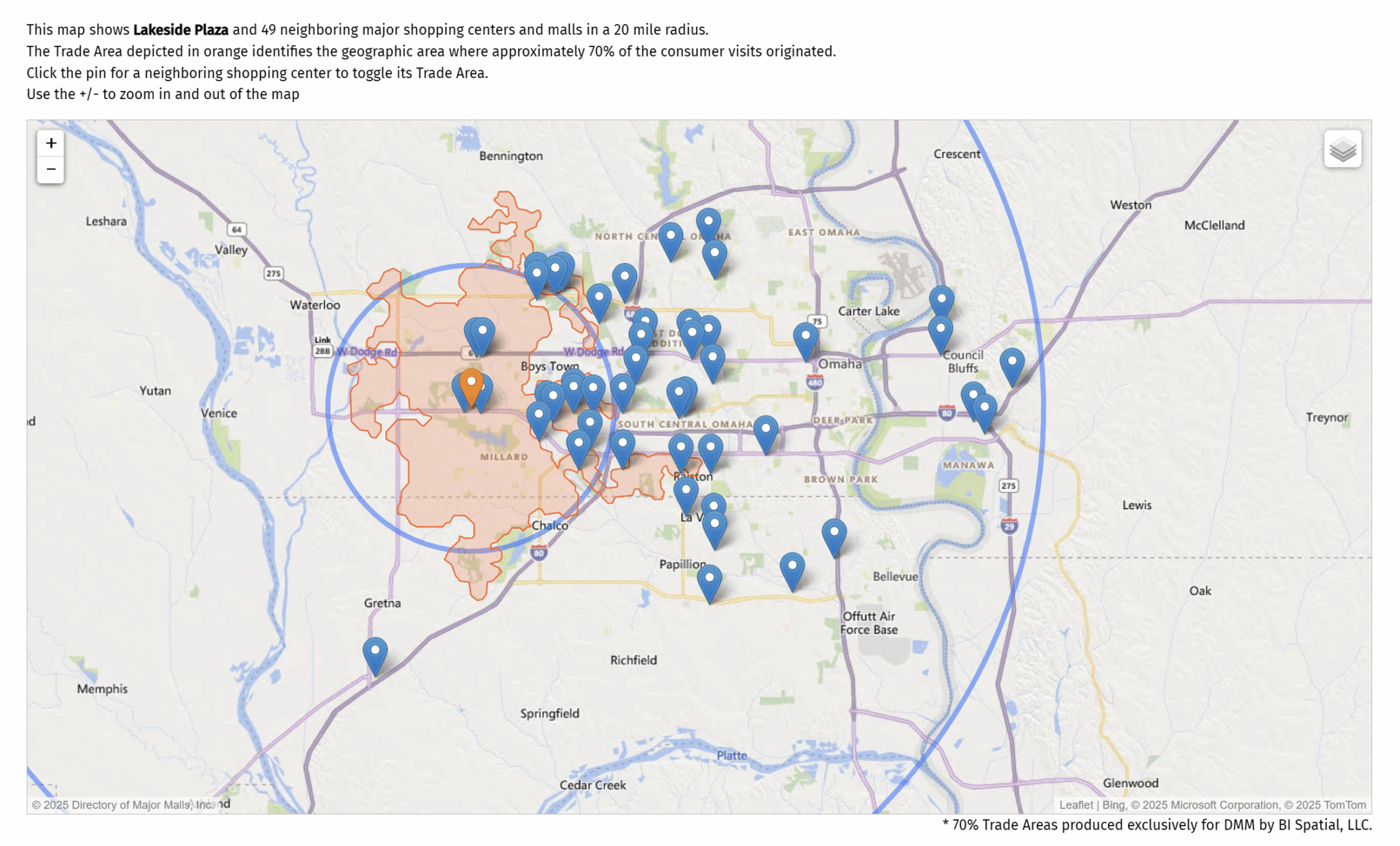 - Visitor Catchment: The average visitor to Lakeside Plaza travels approximately 9.5 miles, reflecting the center’s role as a convenient shopping and dining destination for both nearby neighborhoods and the broader Douglas County region. Notably, nearly 12% of visits come from guests traveling more than 40 miles, underscoring the center’s appeal to regional visitors drawn by independent anchors like Spare Time Entertainment and the diverse mix of dining options.