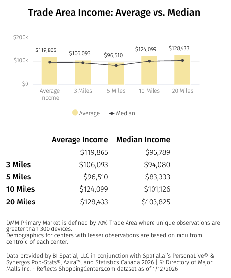 According to the trade area analysis available on ShoppingCenters.com: