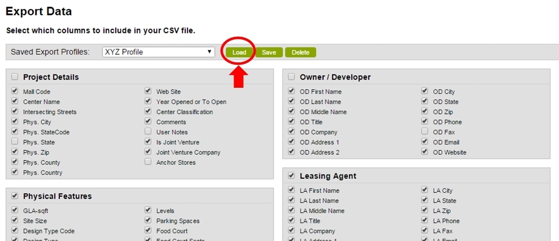 Note: You may also delete saved Export Profiles using the Delete option on the export field selection screen.